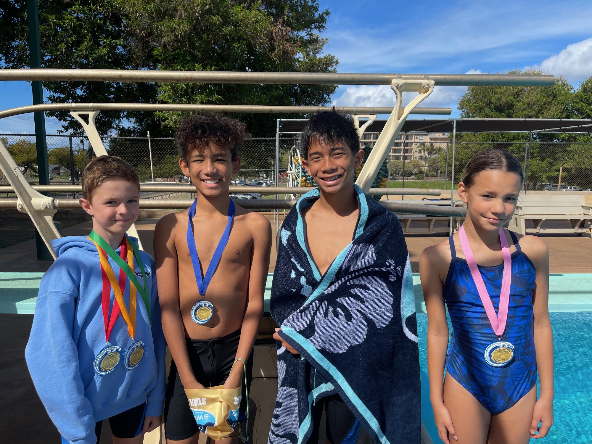 Congratulations to Ani Correa, Samuel Evanowich, Levi Martinez and Zion Wong Yuen who competed in JAG CHAMPIONSHIPS on Maui over the weekend. JAG is a championship meet limited to swimmers with A & AA/INV. It was a fantastic weekend of swimming with lots of best times, 4 Championship swims, many top 8 finishes, 4 new INV and 5 new CH time standards, AND a high point trophy winner !