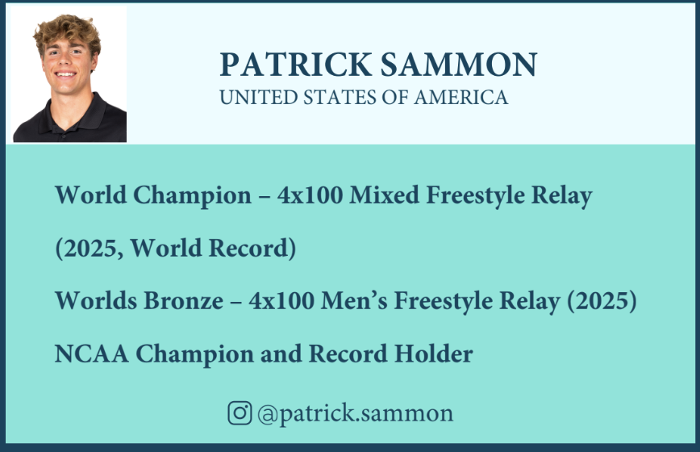 We are in the process of finalizing arrangements to have 2021 Olympic Champion and American Record Holder (100m Breastroke) Michael Andrew, 2024 European Champion Petra Senanszky (50m Freestyle), 2025 World Bronze Medalist Mikel Schreuders, and 2025 World Champion (4 x 100 mixed relay) Patrick Sammon here on Friday evening and Saturday morning before they depart the islands.